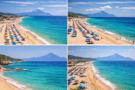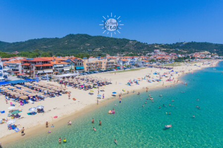 A popular summer resort with a long beach and impressive views of Mount Athos. Ideal for active seaside holidays.
