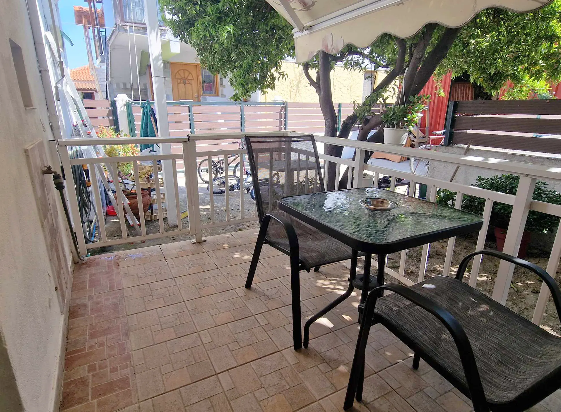 The private entrance and outdoor balcony area enhance privacy and ease of movement throughout your stay.