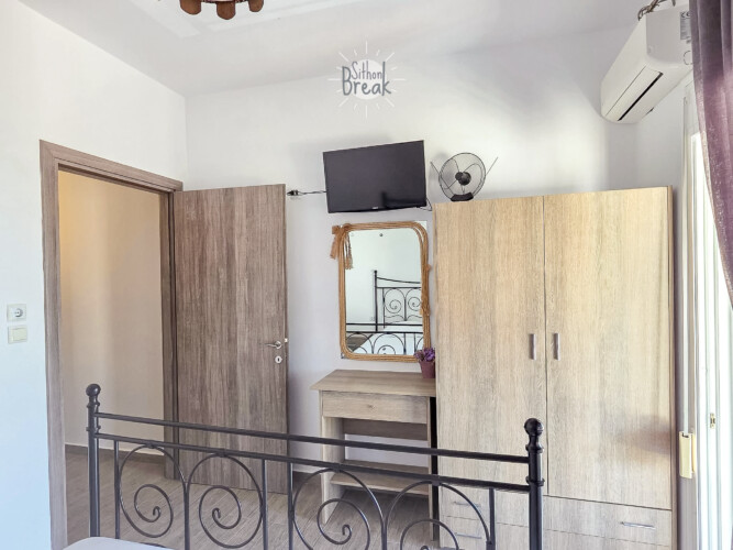 The house is situated 5 meters from Toroni Beach, approximately a 0.5 -minute walk, making it an excellent choice for guests who want to stay close to the sea while enjoying peace and privacy.