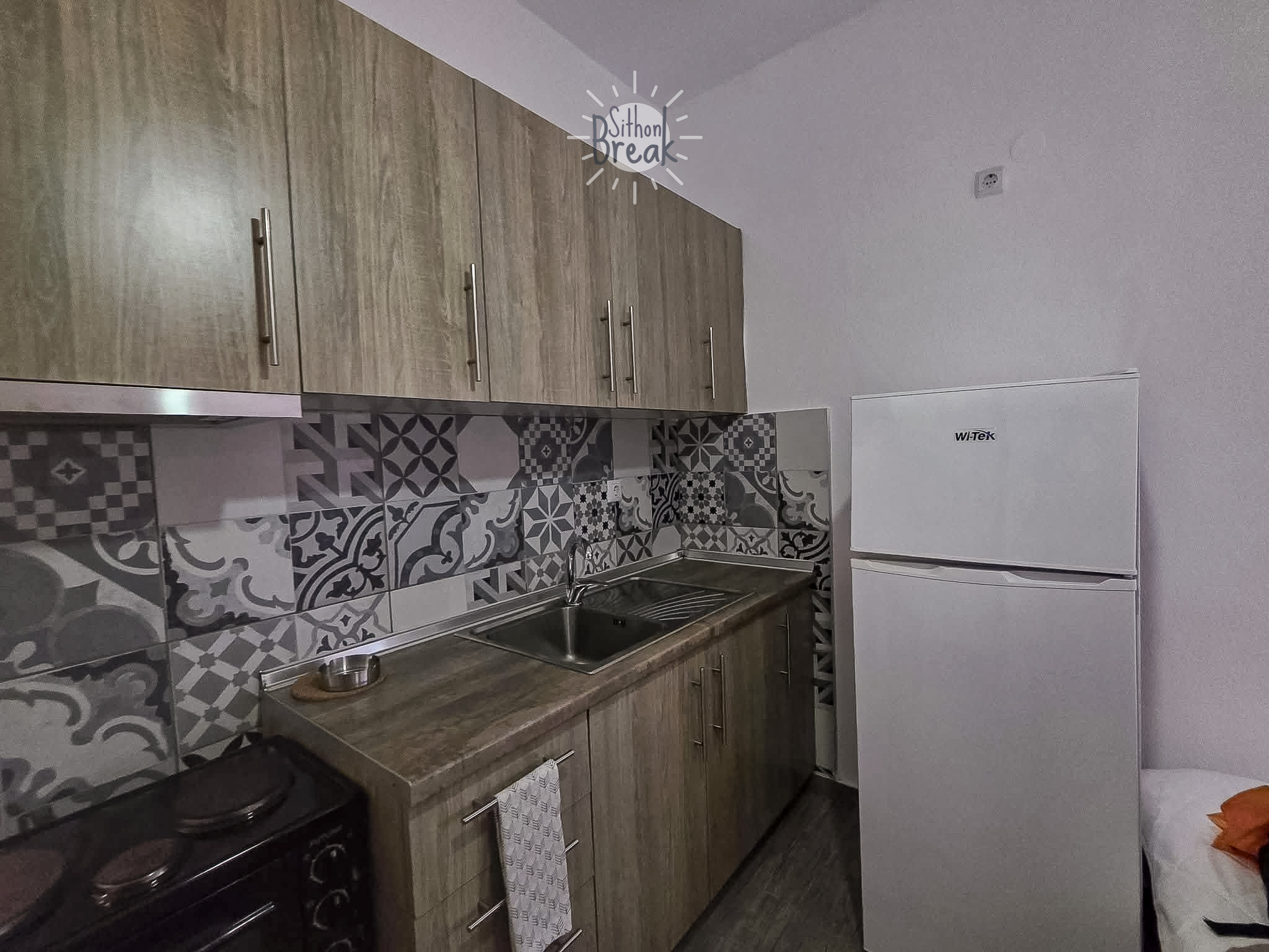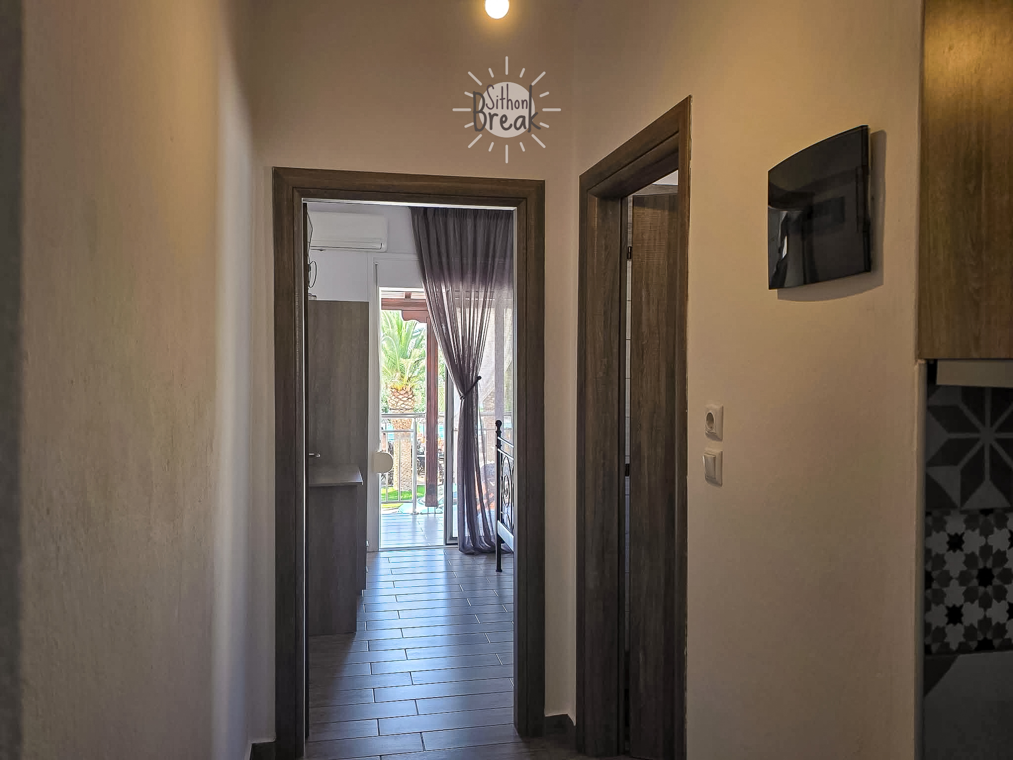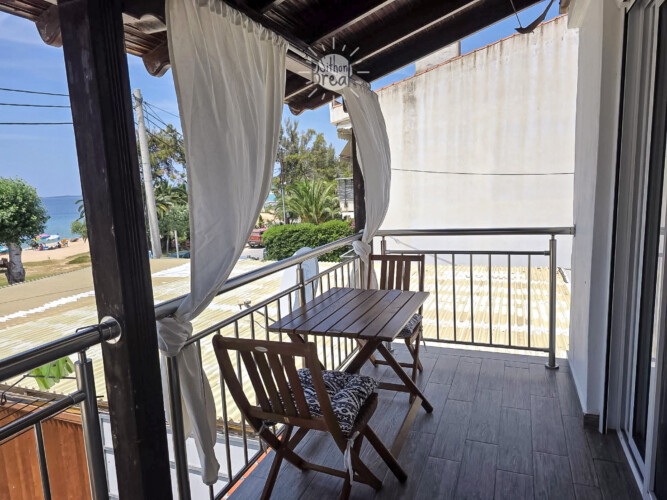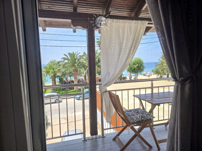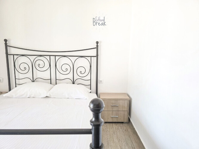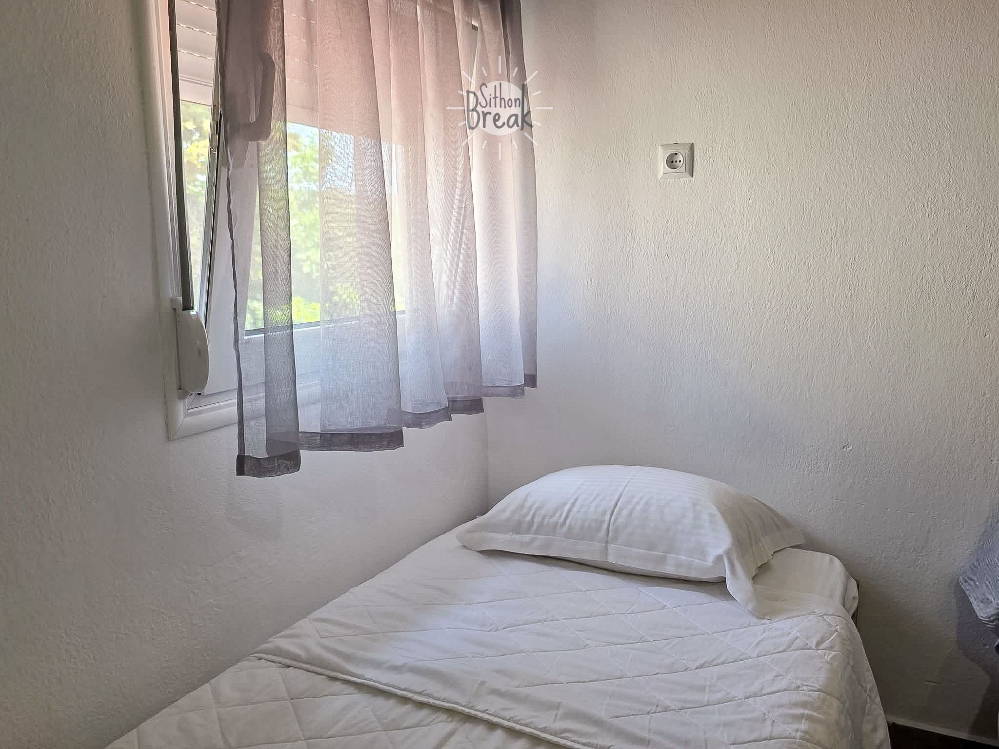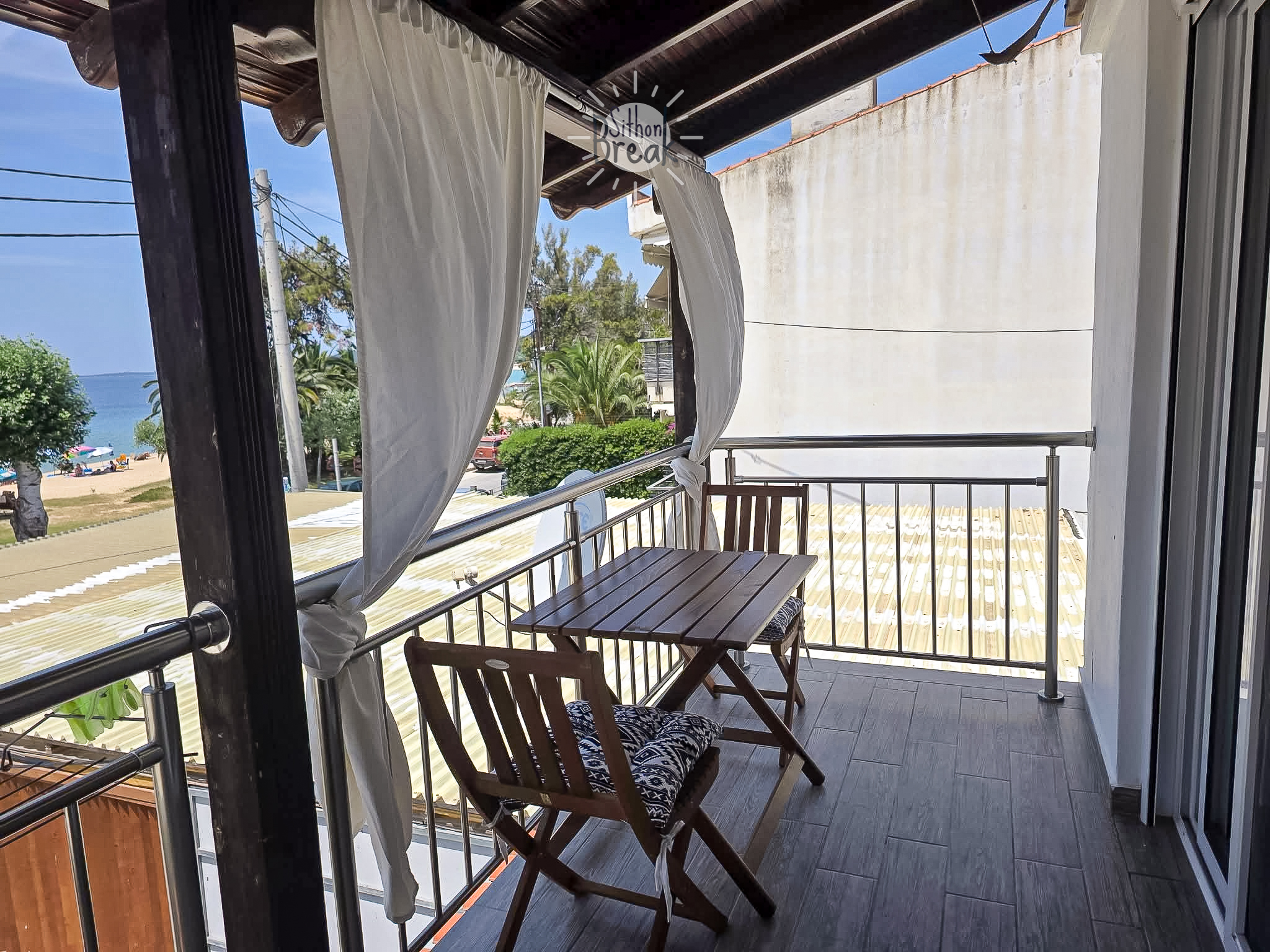 In a serene coastal setting, in one of the most beautiful areas of Sithonia, Halkidiki. It is a centrally located apartment, within walking distance of a supermarket, tavernas, and beach bars.