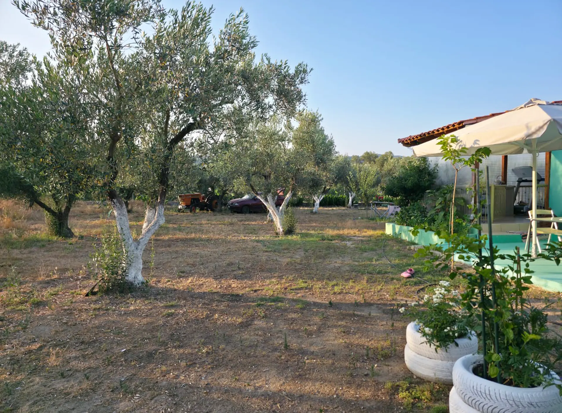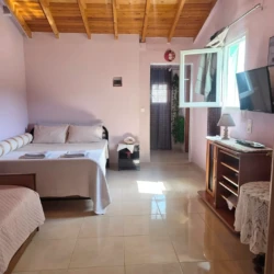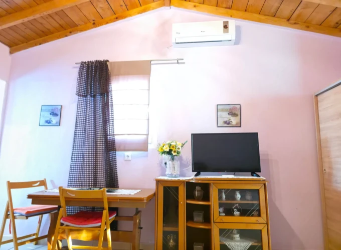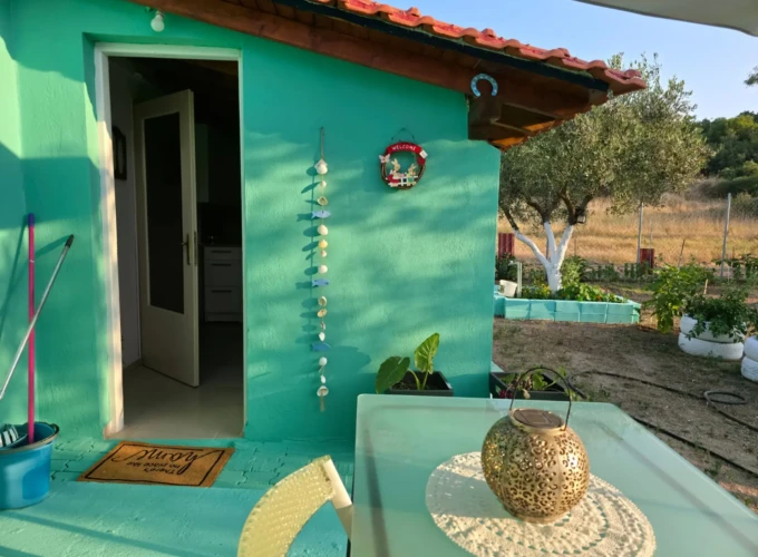 Nestled in the lush surroundings of Sykia, Sithonia, the Farm Studio offers a unique holiday experience just 2.0 km from Sykia Beach. Set within a large 5,000 m² fenced green yard, this studio blends practicality with relaxed outdoor living — perfect for families, groups or nature lovers seeking comfort and space close to the sea.