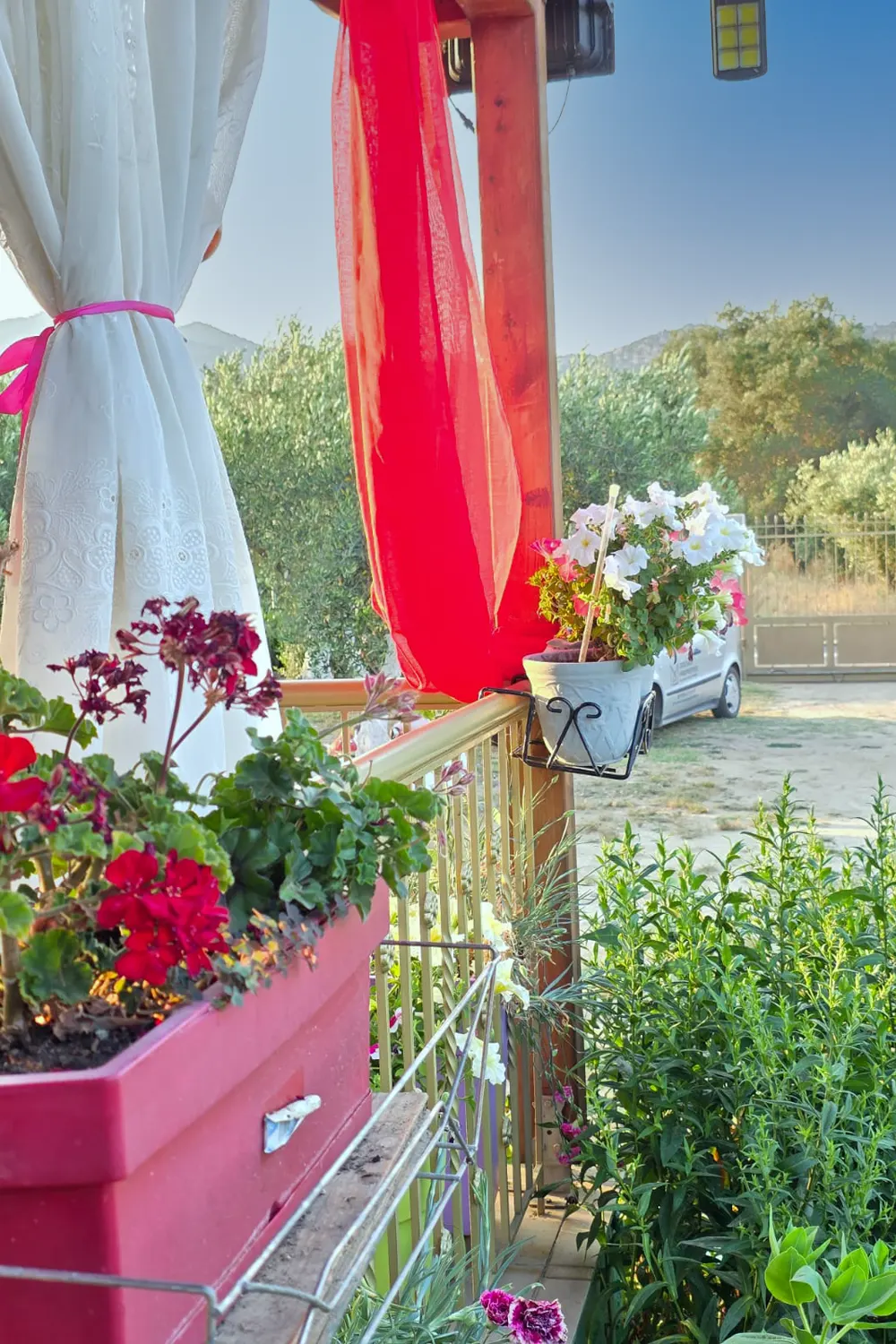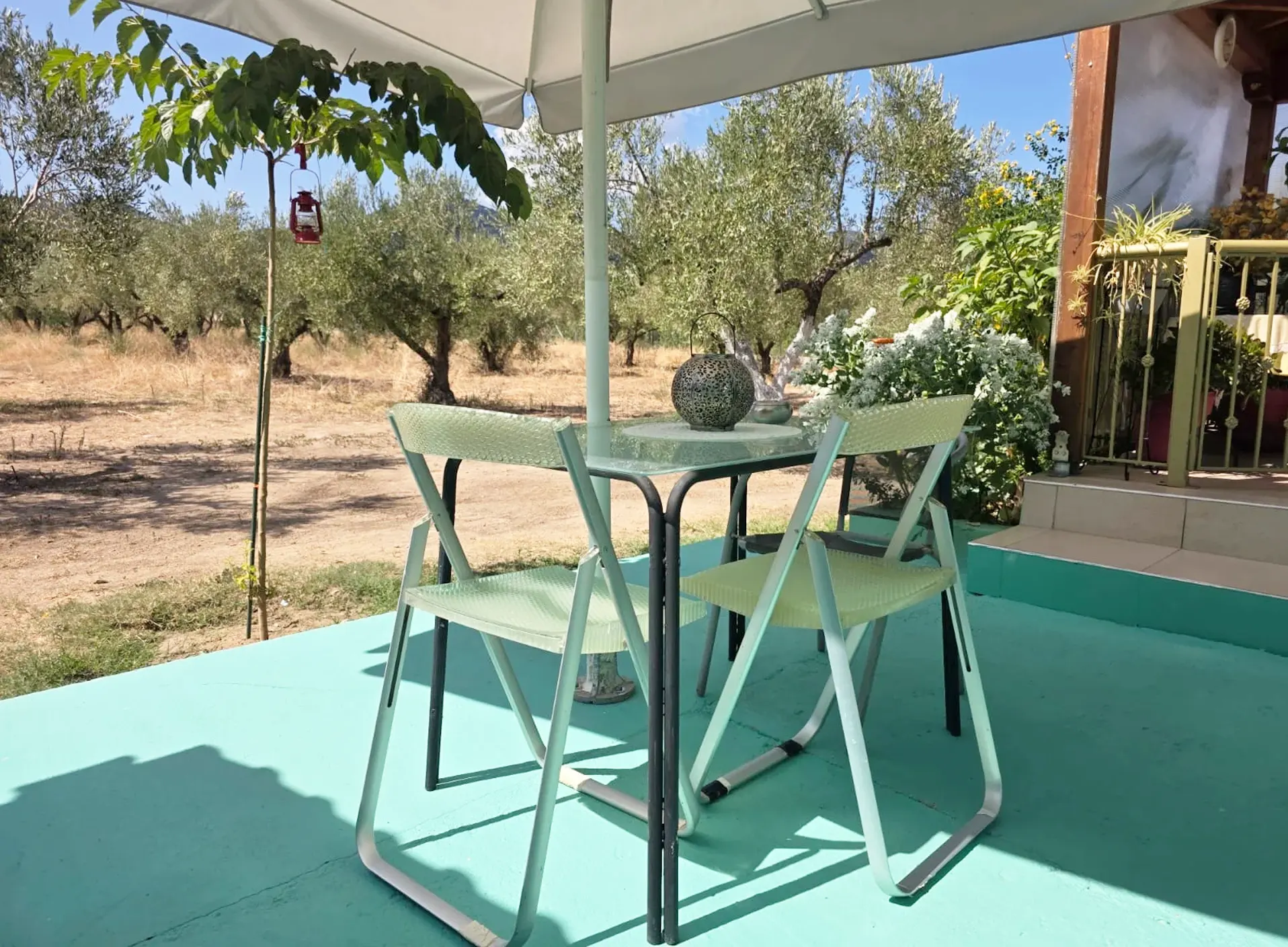• Veranda: Private outdoor seating with green and mountain views