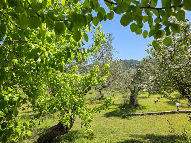 complex, surrounded by a lush green 4.300 garden with flowers , olive trees and natural shade, offering a calm and family-friendly environment.