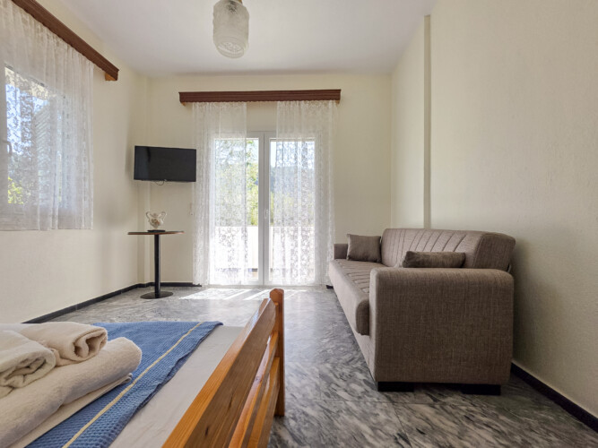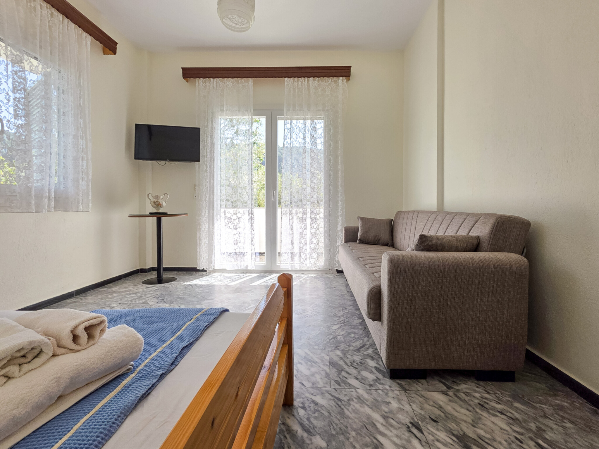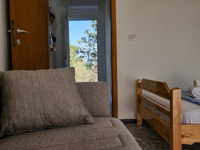 The apartment is situated1 150 meters from Beach, approximately a 3-4-minute walk, making it an excellent choice for guests who want to stay close to the sea while enjoying peace and privacy.