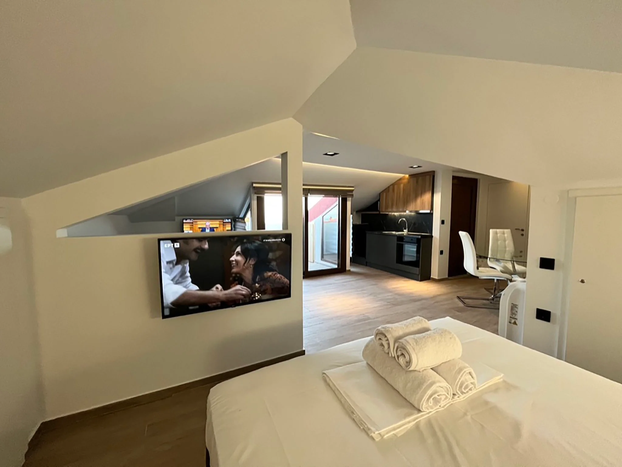 In Loft Studio is a modern apartment complex located on the fourth floor in the heart of Afytos, Halkidiki. Ideal for couples and solo travelers, it offers a comfortable and stylish stay just steps away from the village center.
