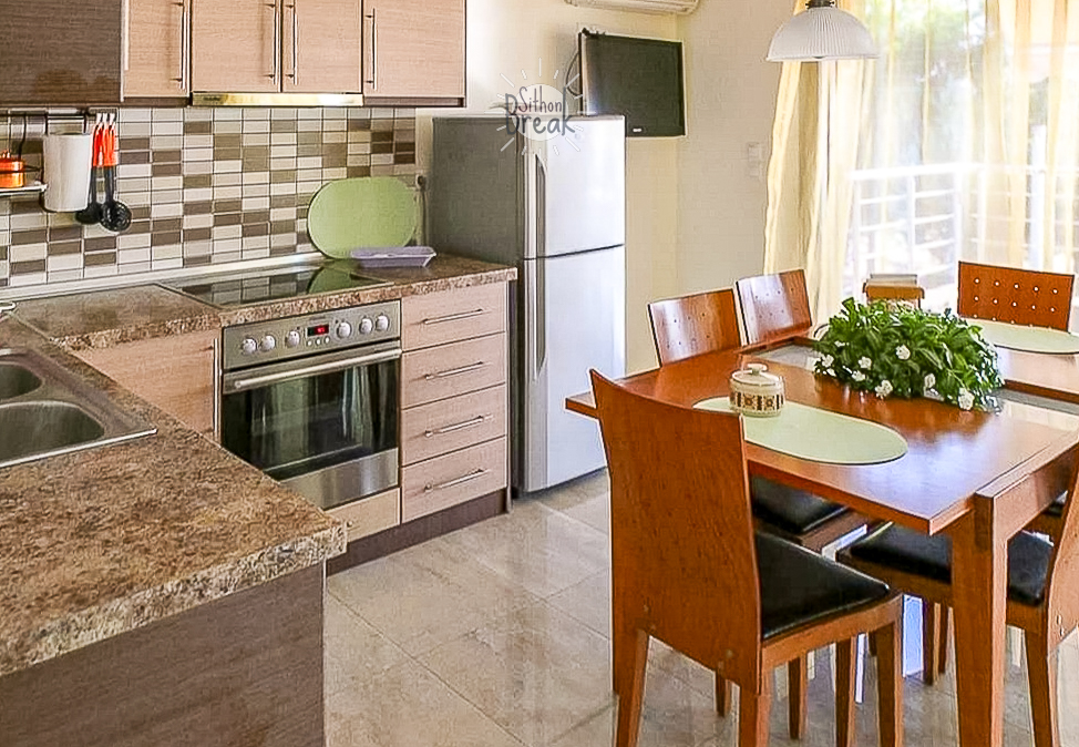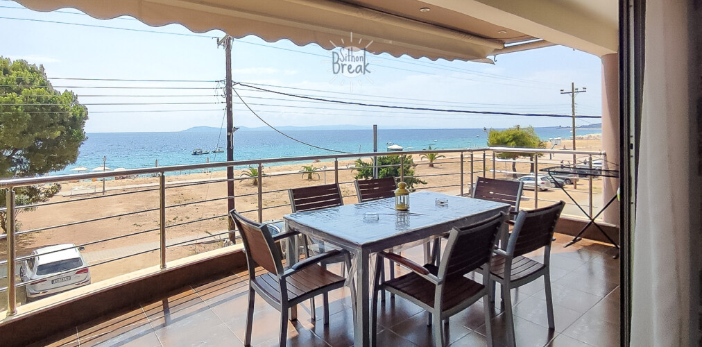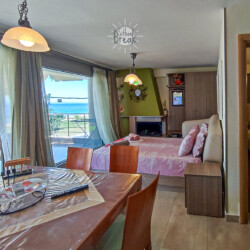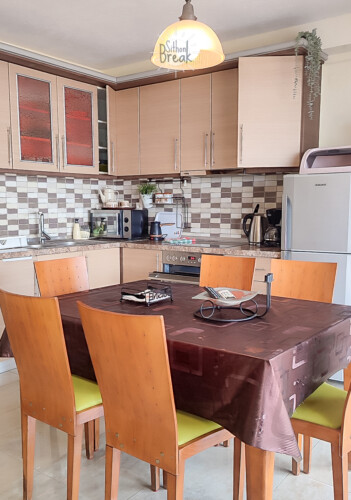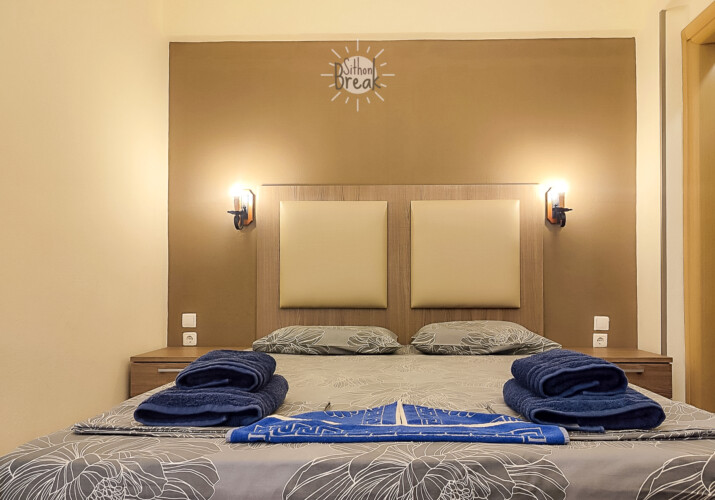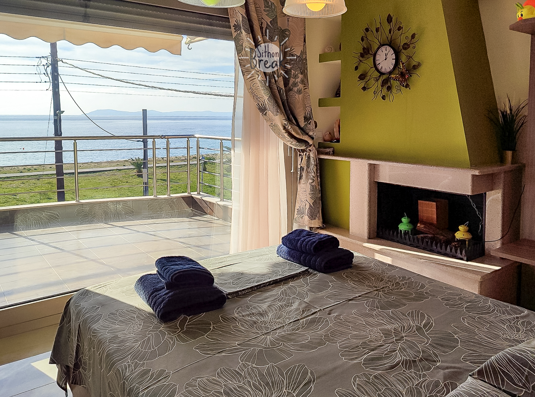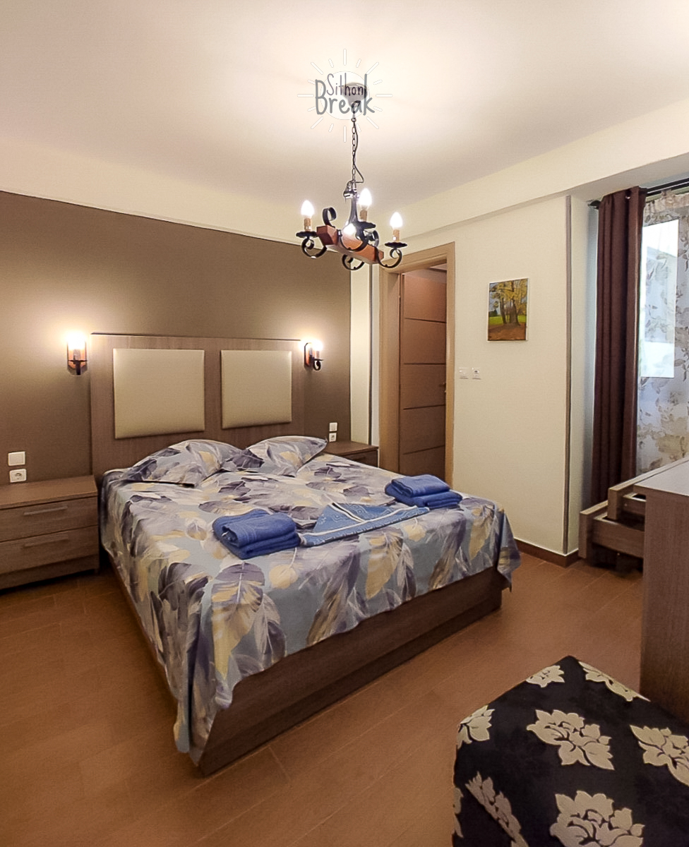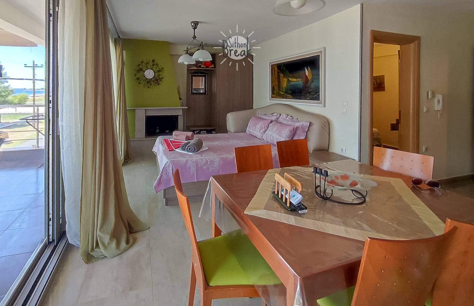 In a serene coastal setting, in one of the most beautiful areas of Sithonia, Halkidiki. It is a centrally located apartment, within walking distance of a supermarket, tavernas, and beach bars.