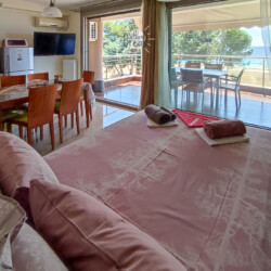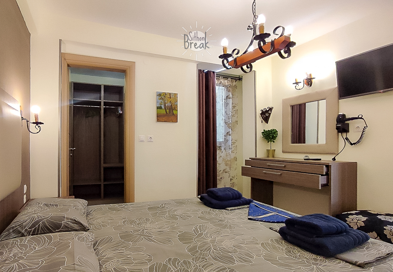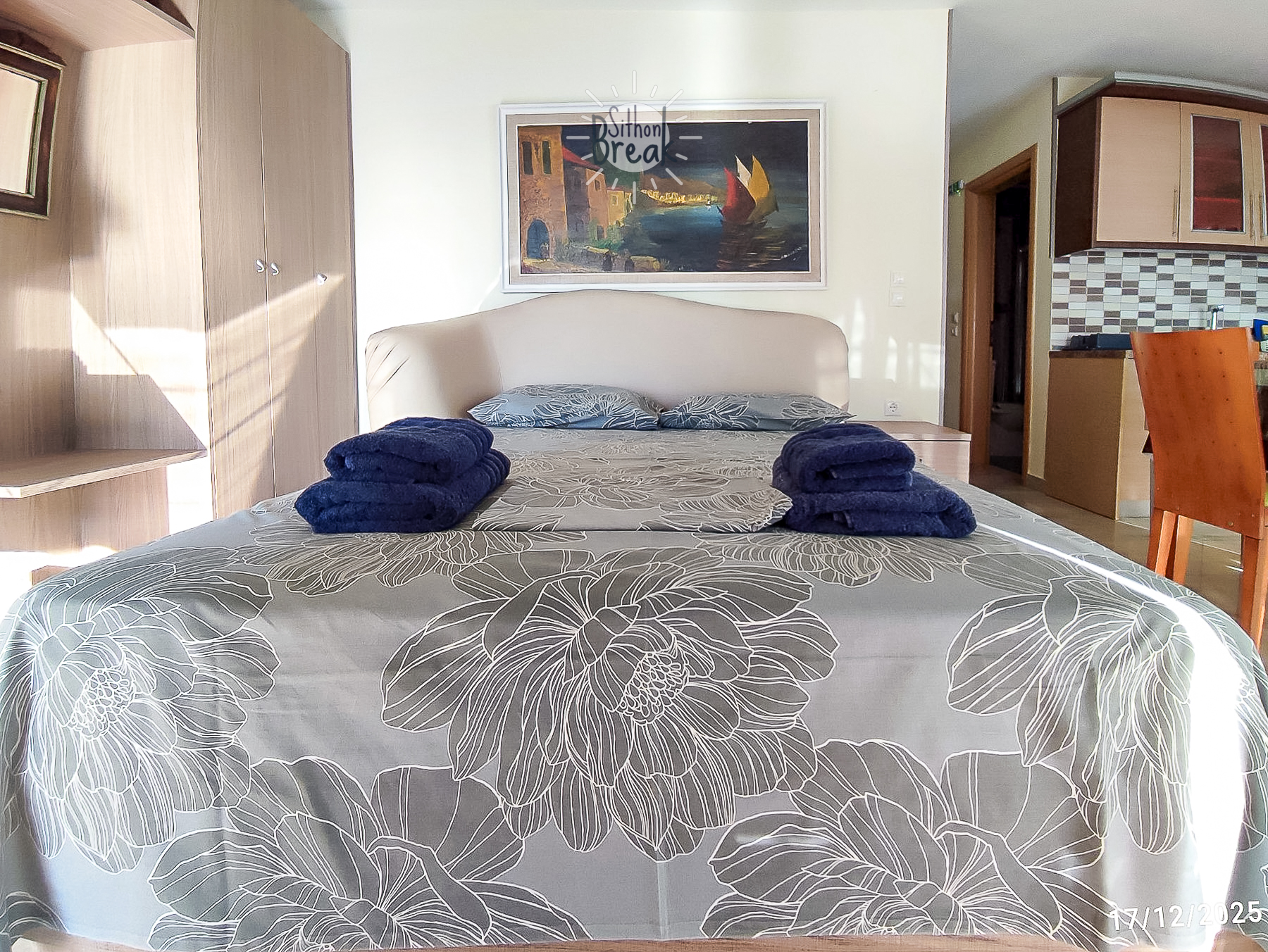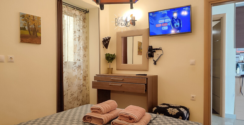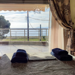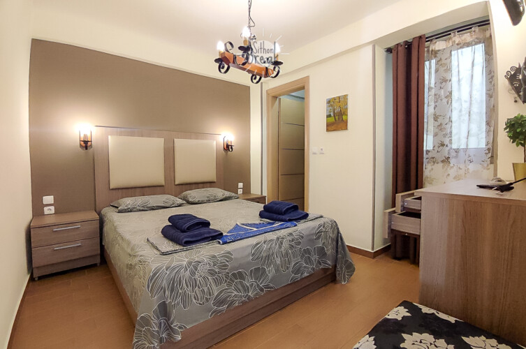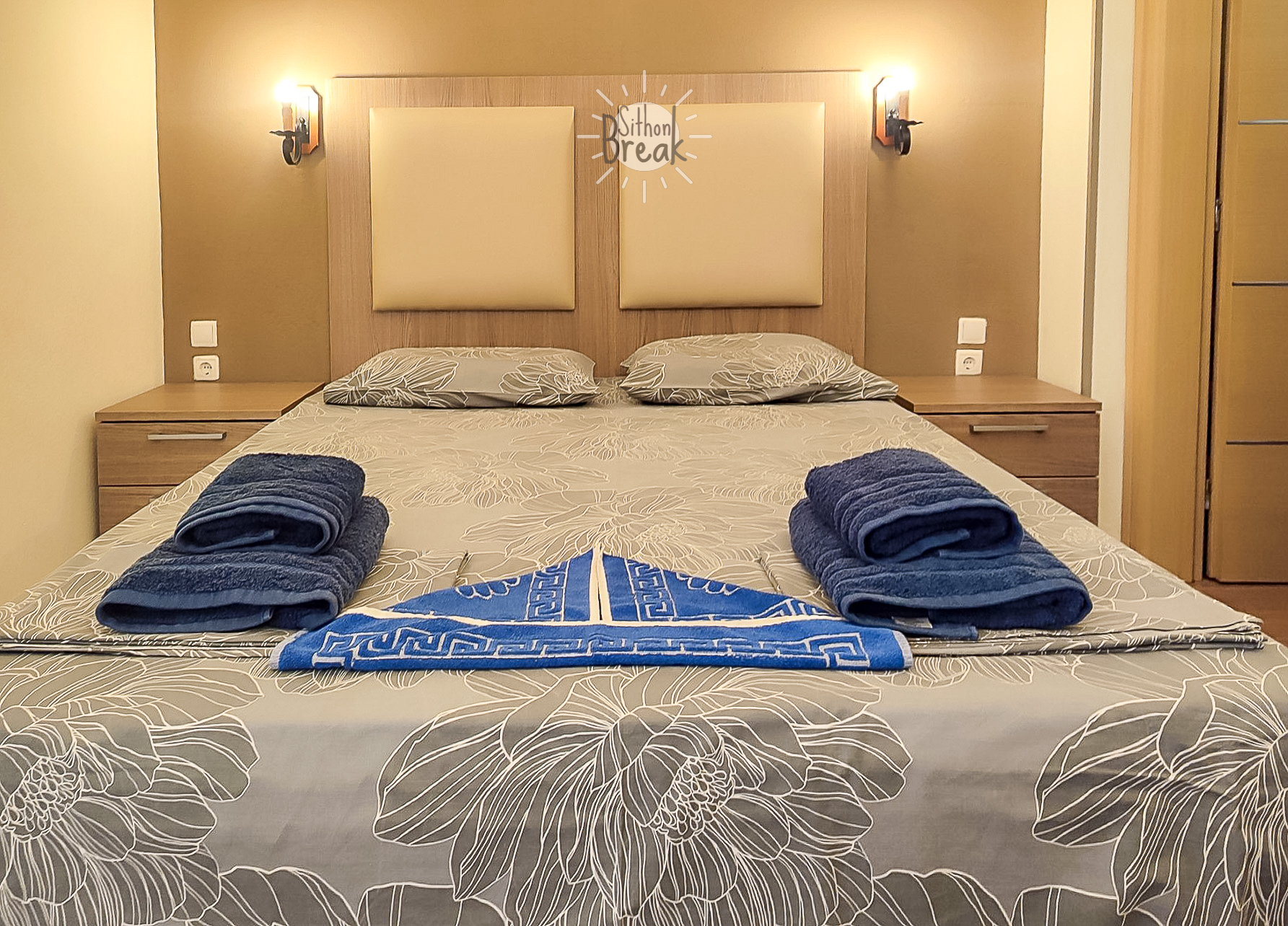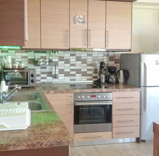 In a serene coastal setting, in one of the most beautiful areas of Sithonia, Halkidiki. It is a centrally located apartment, within walking distance of a supermarket, tavernas, and beach bars.