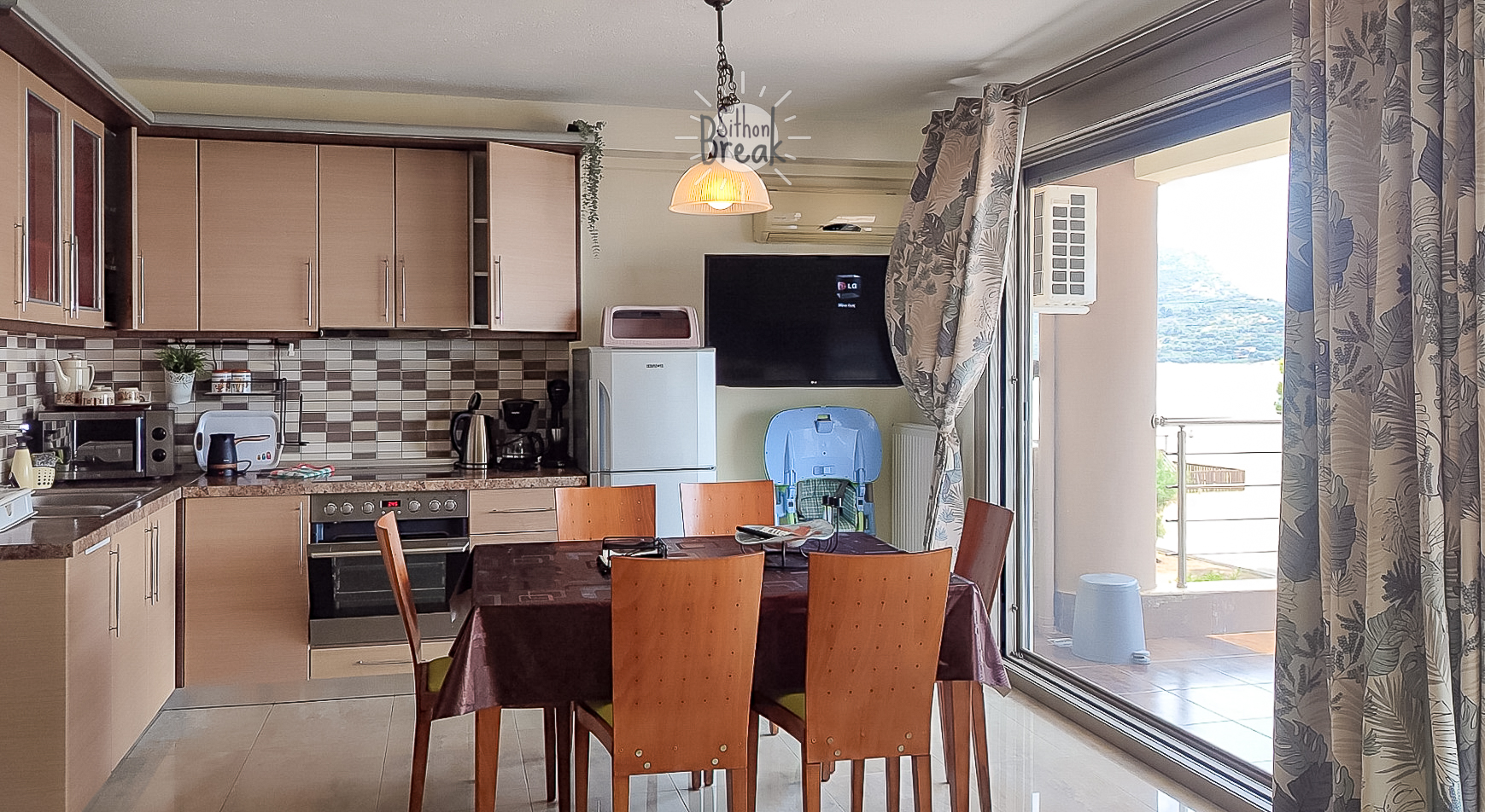 Inside to the Living room , there is a fully organized and fully equipped kitchen with dining table and baby-chair, providing everything necessary for a comfortable stay and allowing guests to feel at home throughout their holiday.