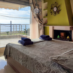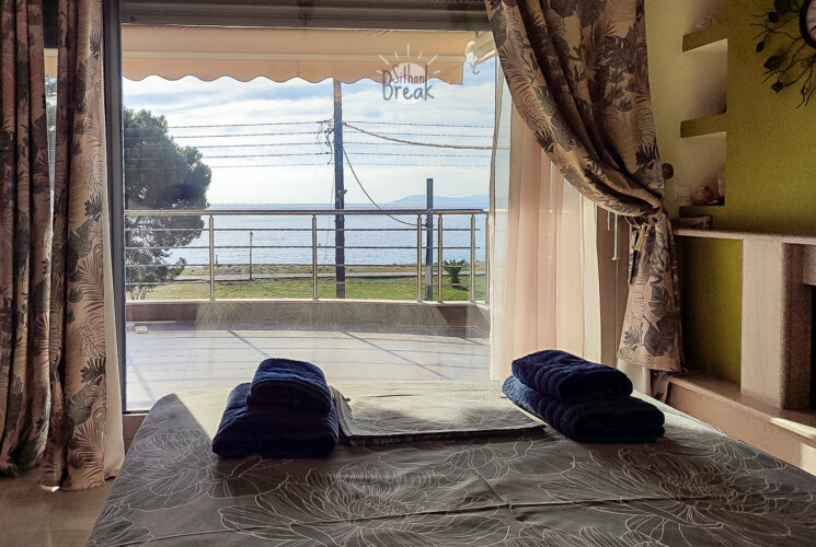 The property is just 10 meters from the sea, providing immediate access to the beach and making it an ideal choice for guests who want to be right by the water. The front balcony offers beautiful sea views, perfect for relaxing moments, while the rear balcony overlooks the mountain, combining sea and nature views in one stay. This makes Iolida Sea View an excellent option for couples and families seeking proximity to the beach along with tranquility and scenic surroundings.