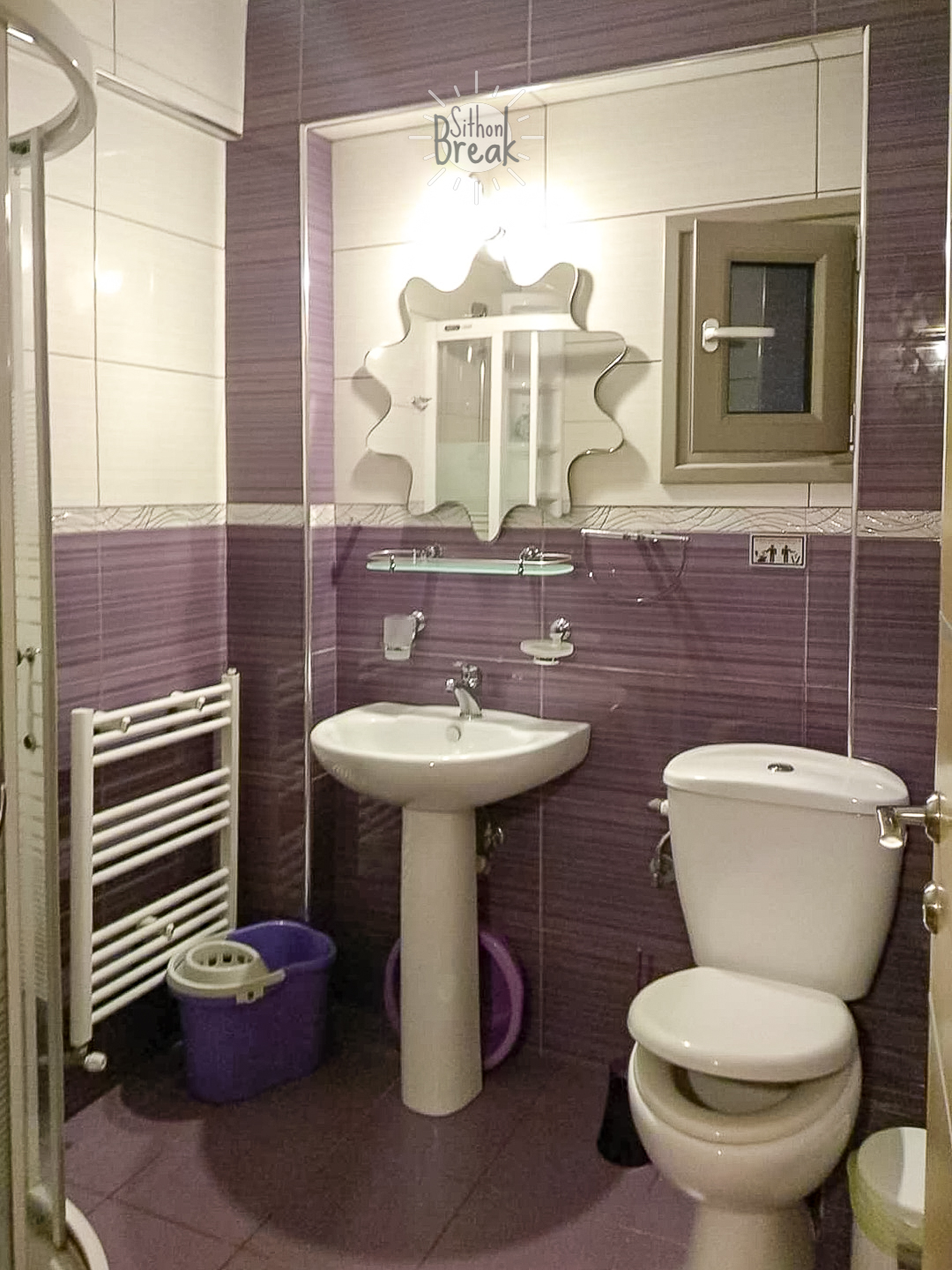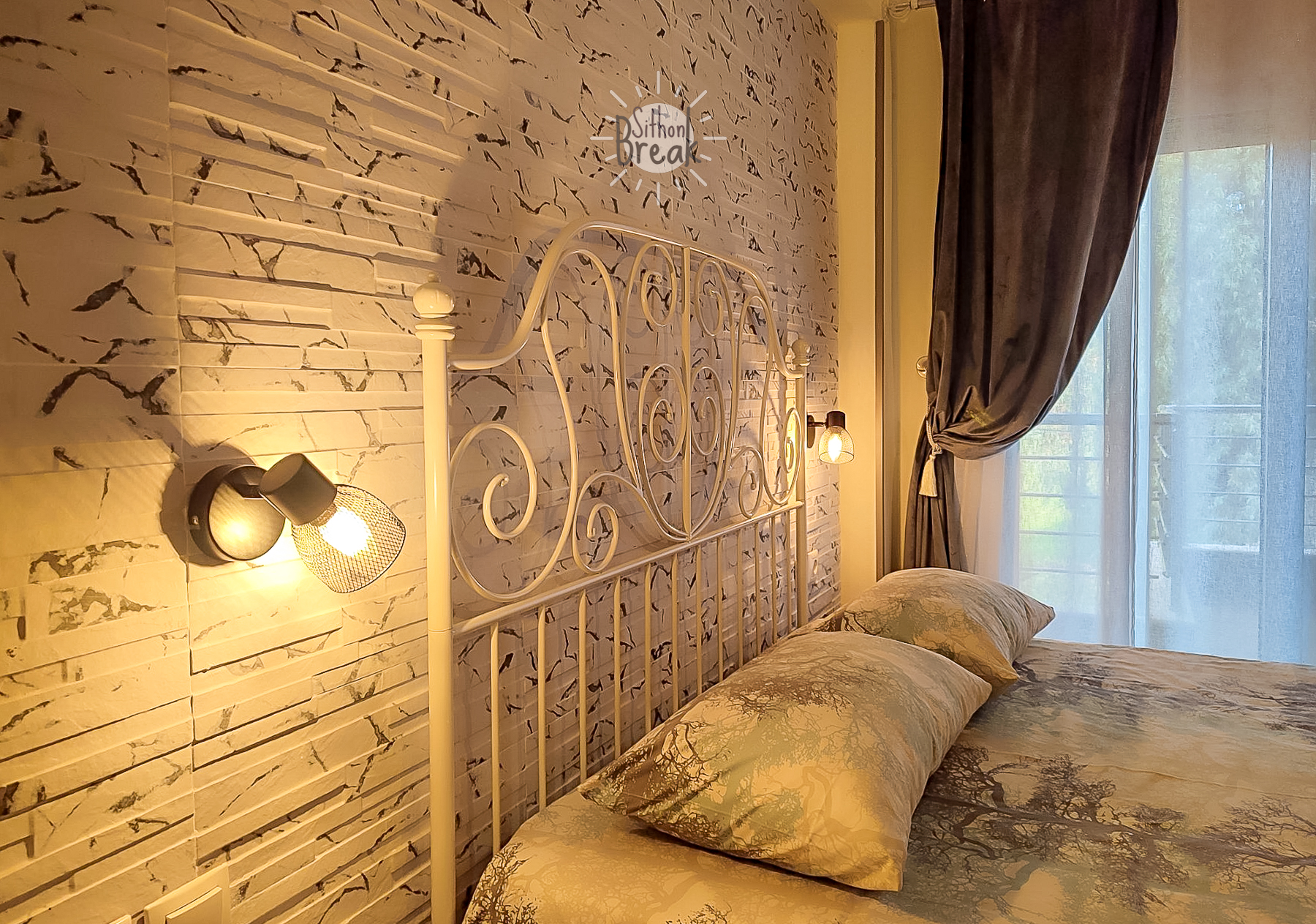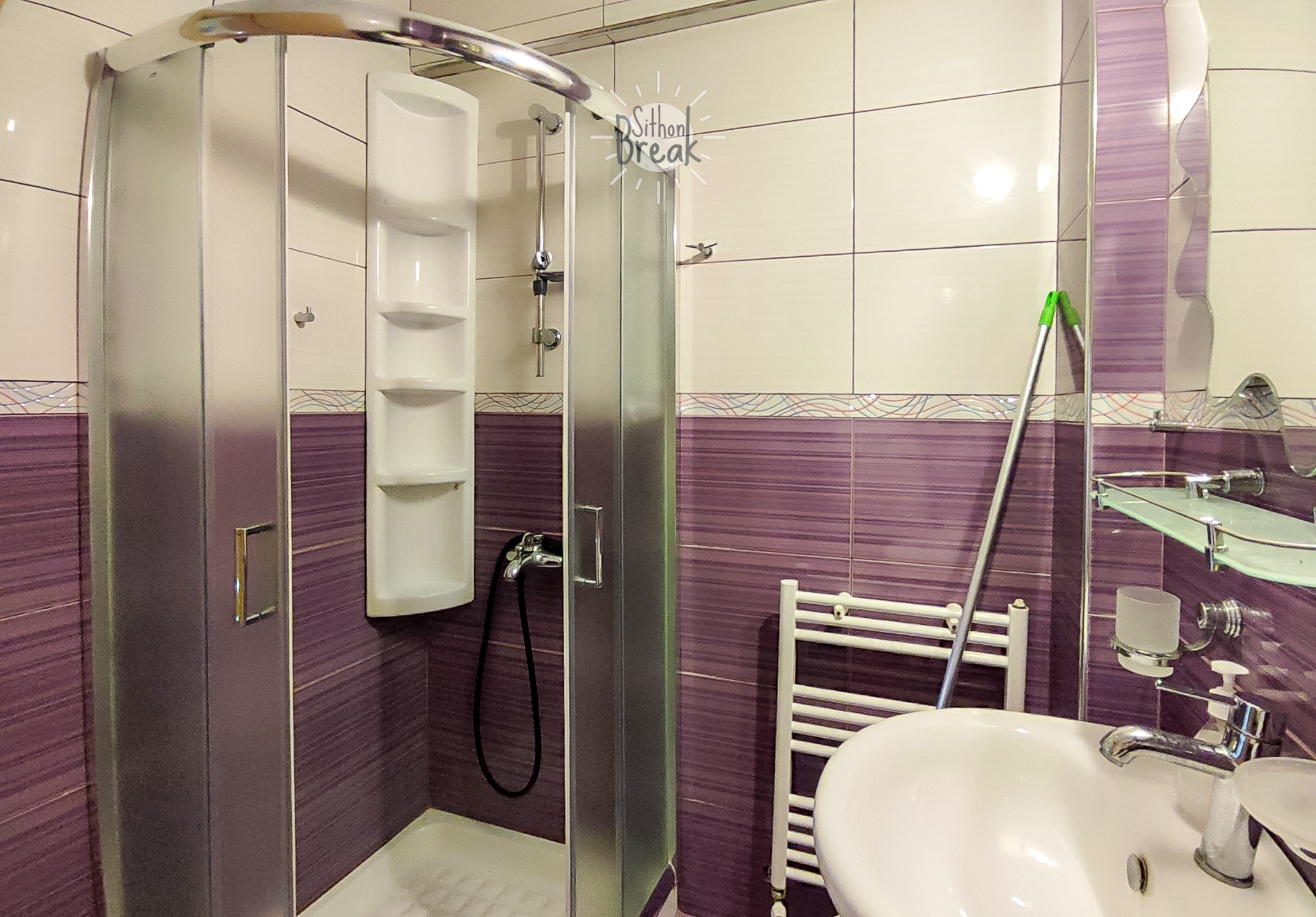 In a serene coastal setting, in one of the most beautiful areas of Sithonia, Halkidiki.  It is a centrally located apartment, within walking distance of a supermarket, tavernas, and beach bars.