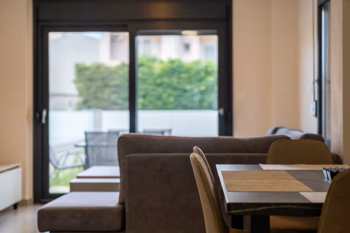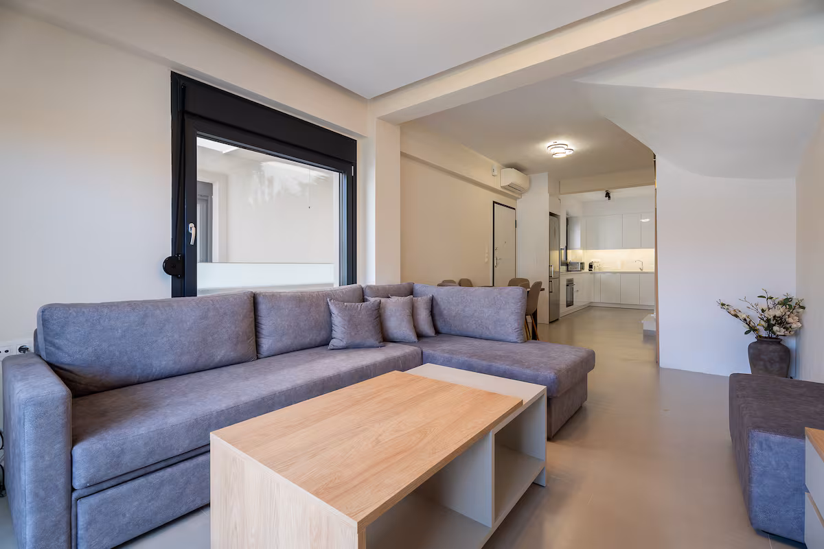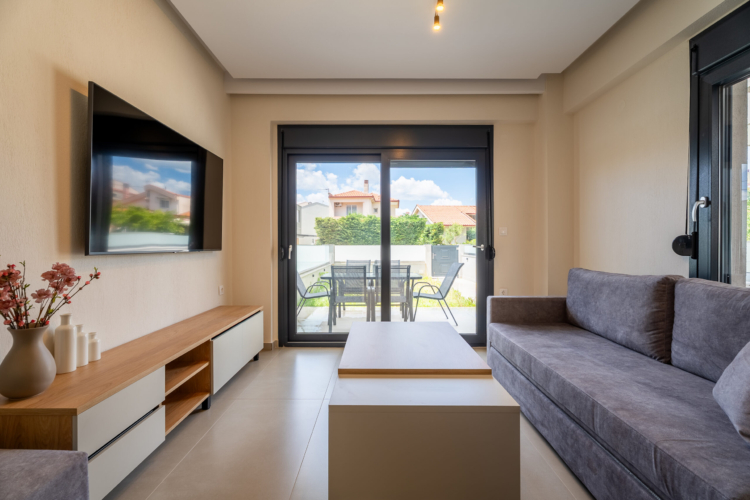 - Living Room with single sofa a Fully Equipped Kitchen, Smart TV and access to private veranda.