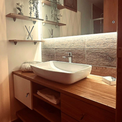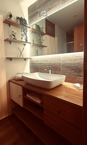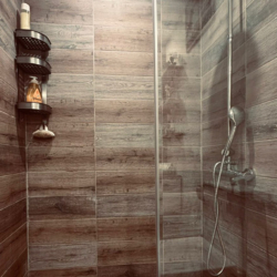 - One modern bathroom with shower
