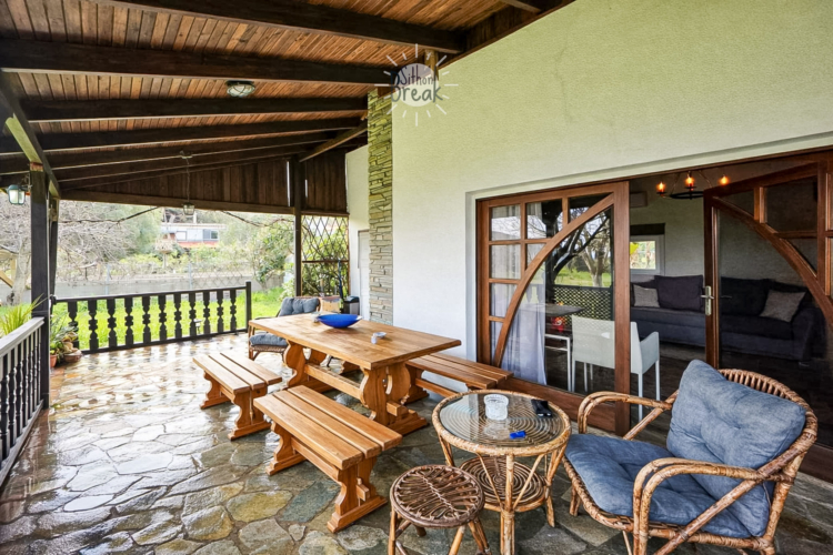 The outdoor space is ideal for relaxing moments, family meals, and enjoying the natural surroundings.