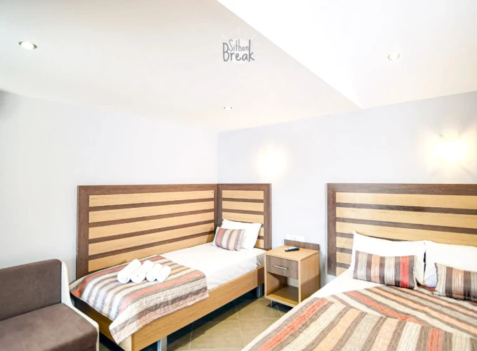 Bright Blue Studio No11 is available all year round, so you can enjoy the sea, the beach views, and the charm of Sarti even during the cooler months. Pets are allowed, so your four-legged family members can join the fun too!