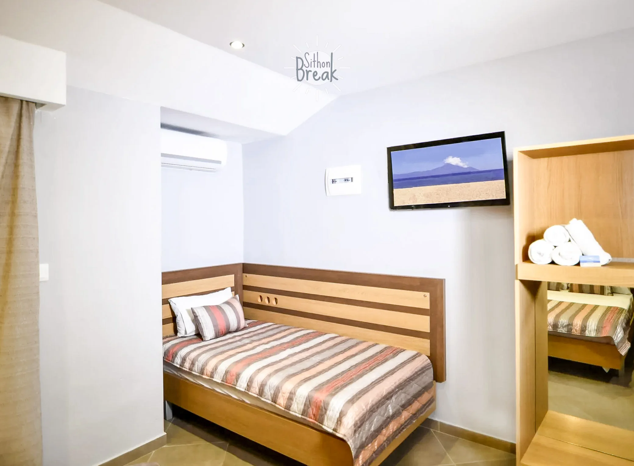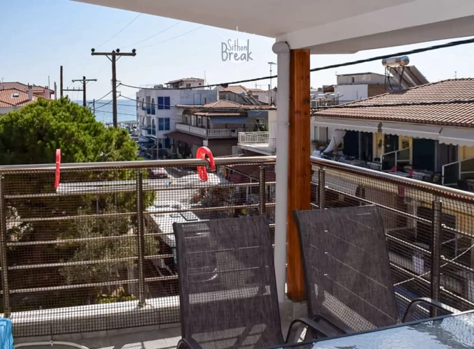 Its prime location places you right in the center of Sarti, near restaurants, cafés, and local shops, while the sandy beach is just a few steps away. It’s the perfect setting for those who love being close to both the sea and the lively village atmosphere.