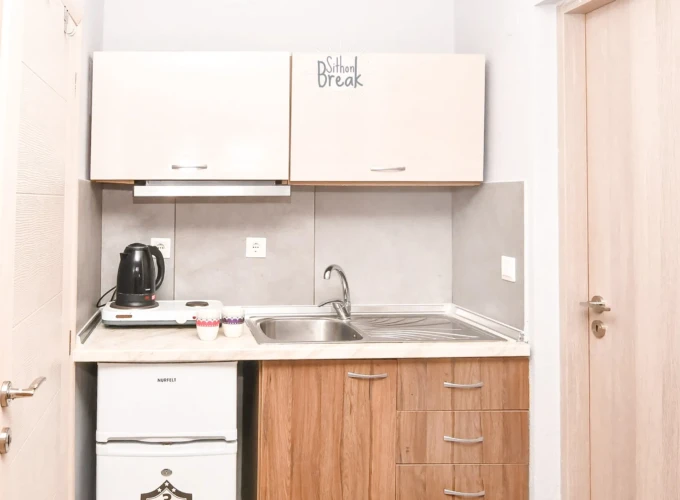 Bright Blue Studio No10 is located in the heart of Sarti, just 50 meters from the beach, offering a unique blend of comfort, elegance, and Greek hospitality. It’s the ideal choice for families or couples looking for a relaxing and stylish seaside escape in Halkidiki.