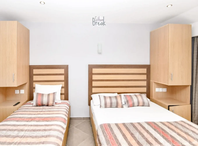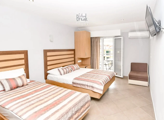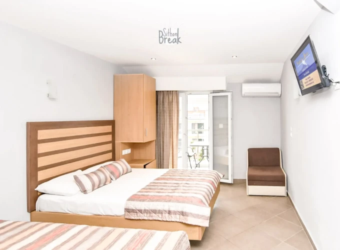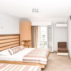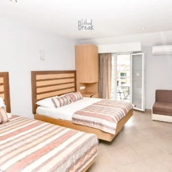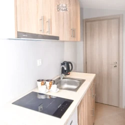 Stylishly decorated and thoughtfully designed, the studio accommodates up to 4 guests and includes one King size bed , one Queen Size  bed. The bright and functional space features a fully equipped kitchen, private bathroom with shower, Wi-Fi, air conditioning, TV, and a private balcony with a pleasant view.