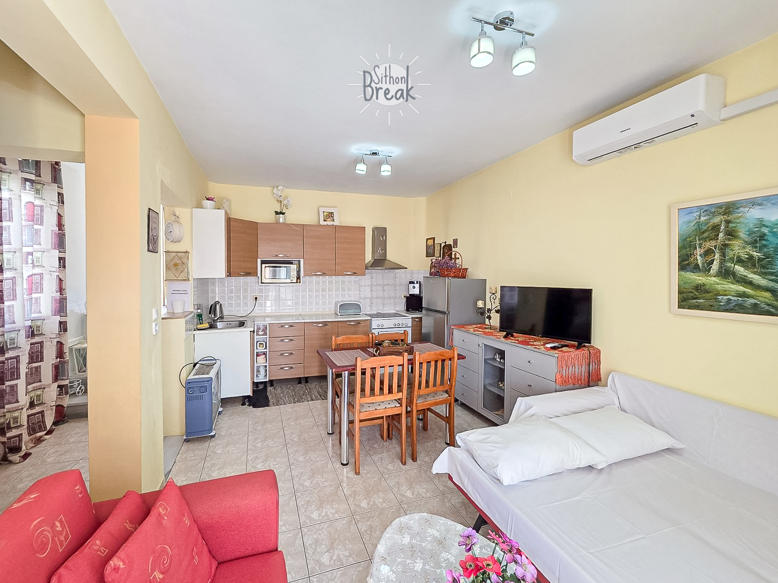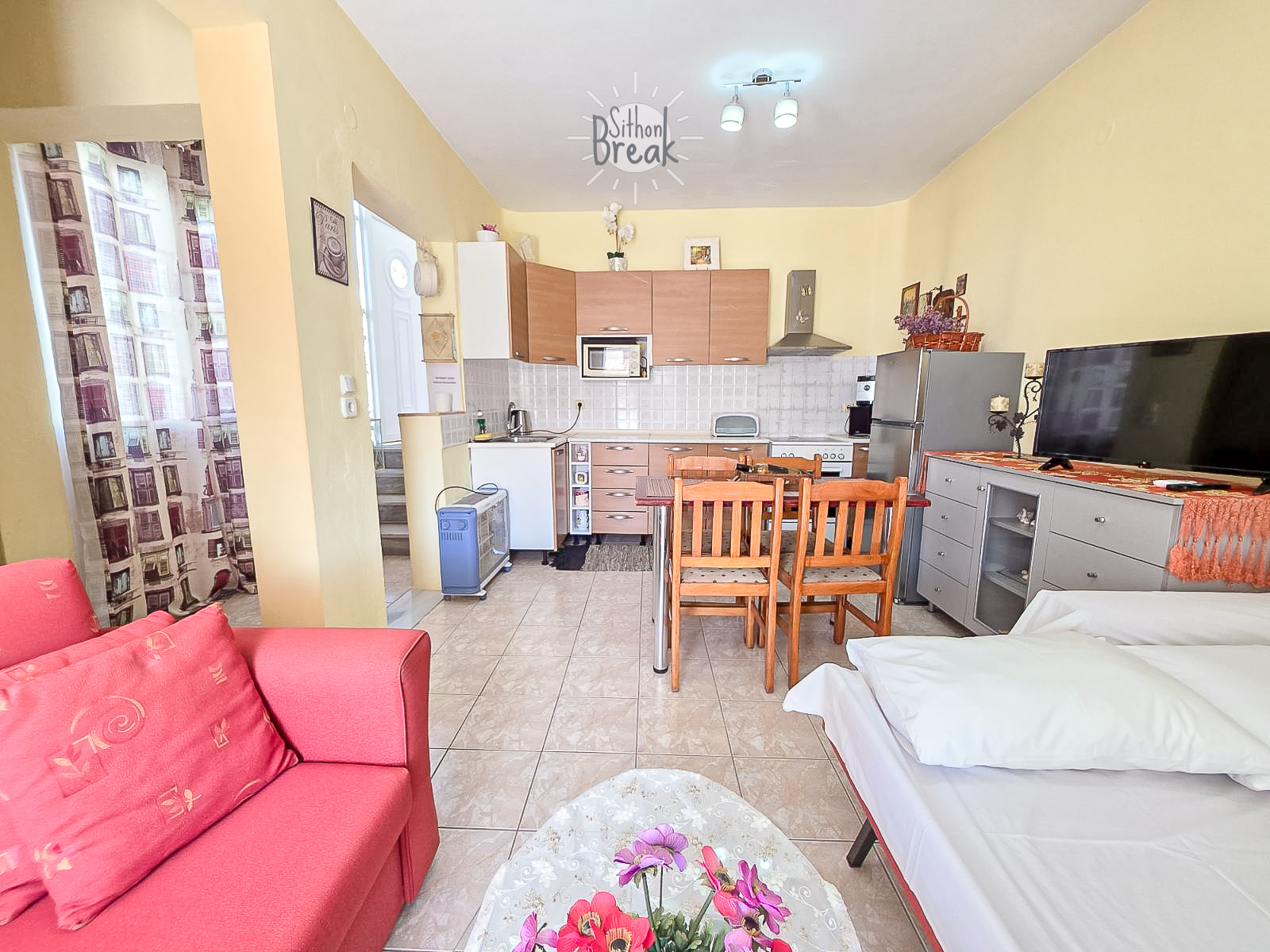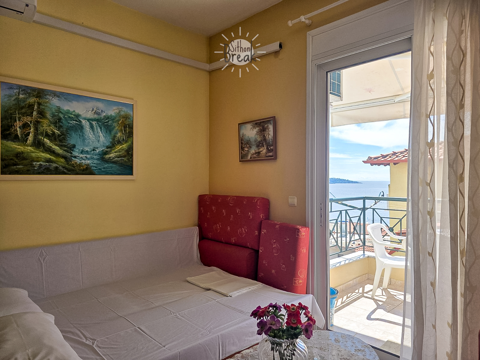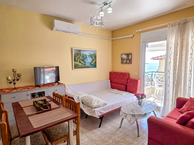 Experience comfort and relaxation in a stylish sea view apartment, ideal for families and small groups seeking a peaceful getaway in Sithonia.
