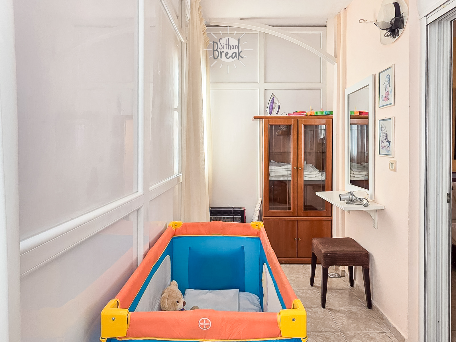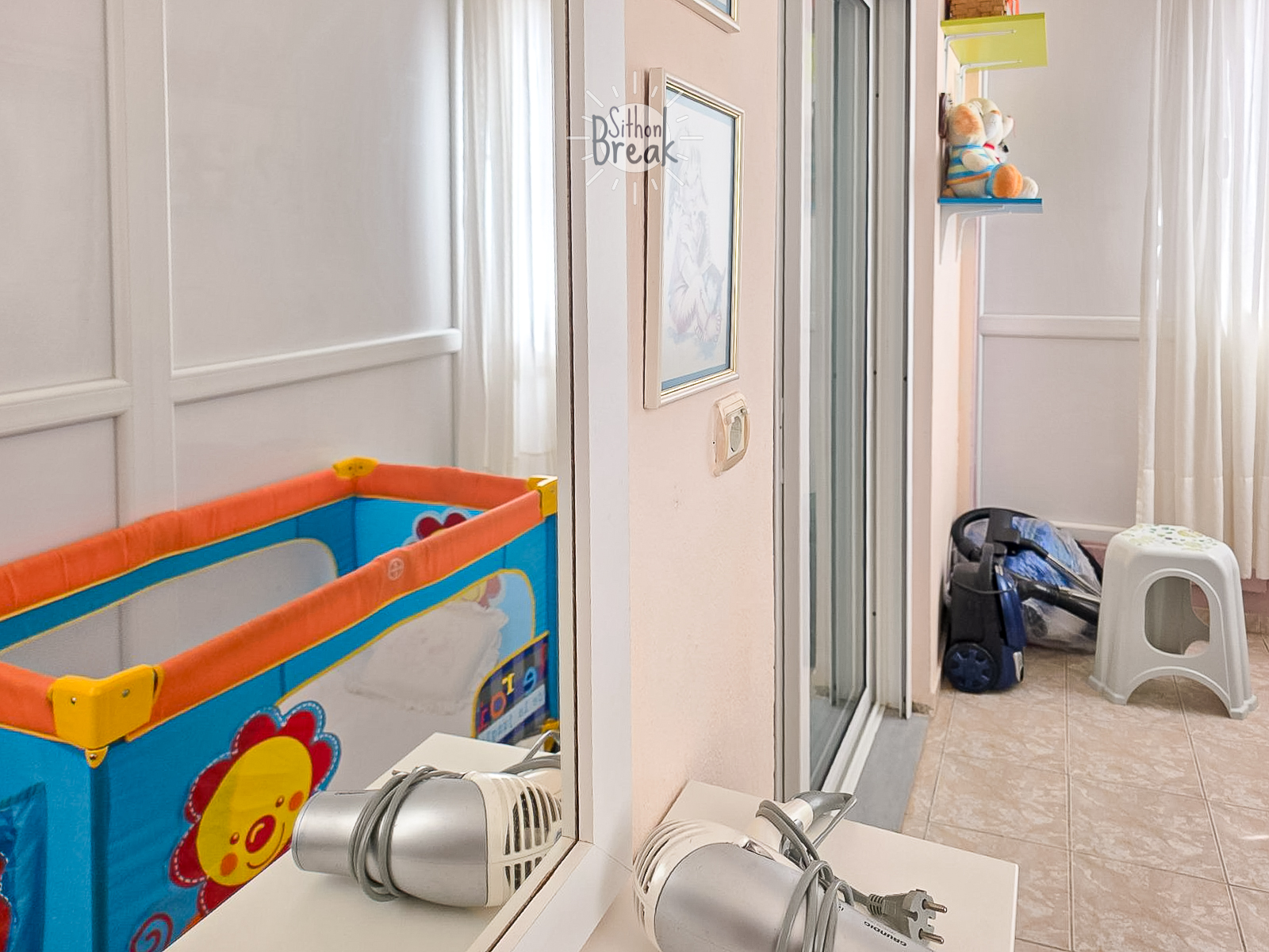 - One auxiliary room with a baby crib