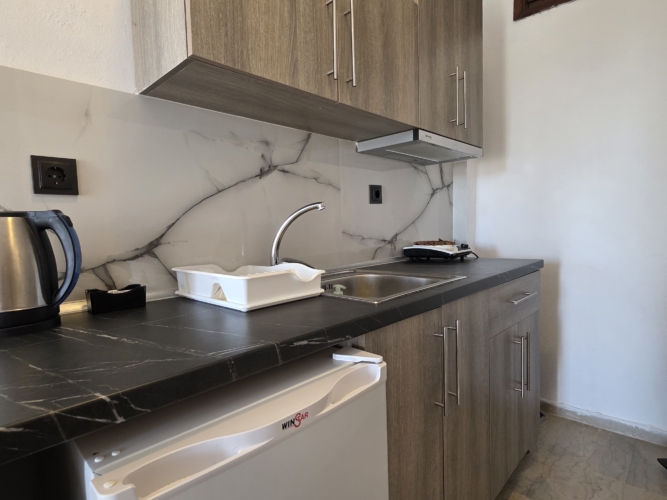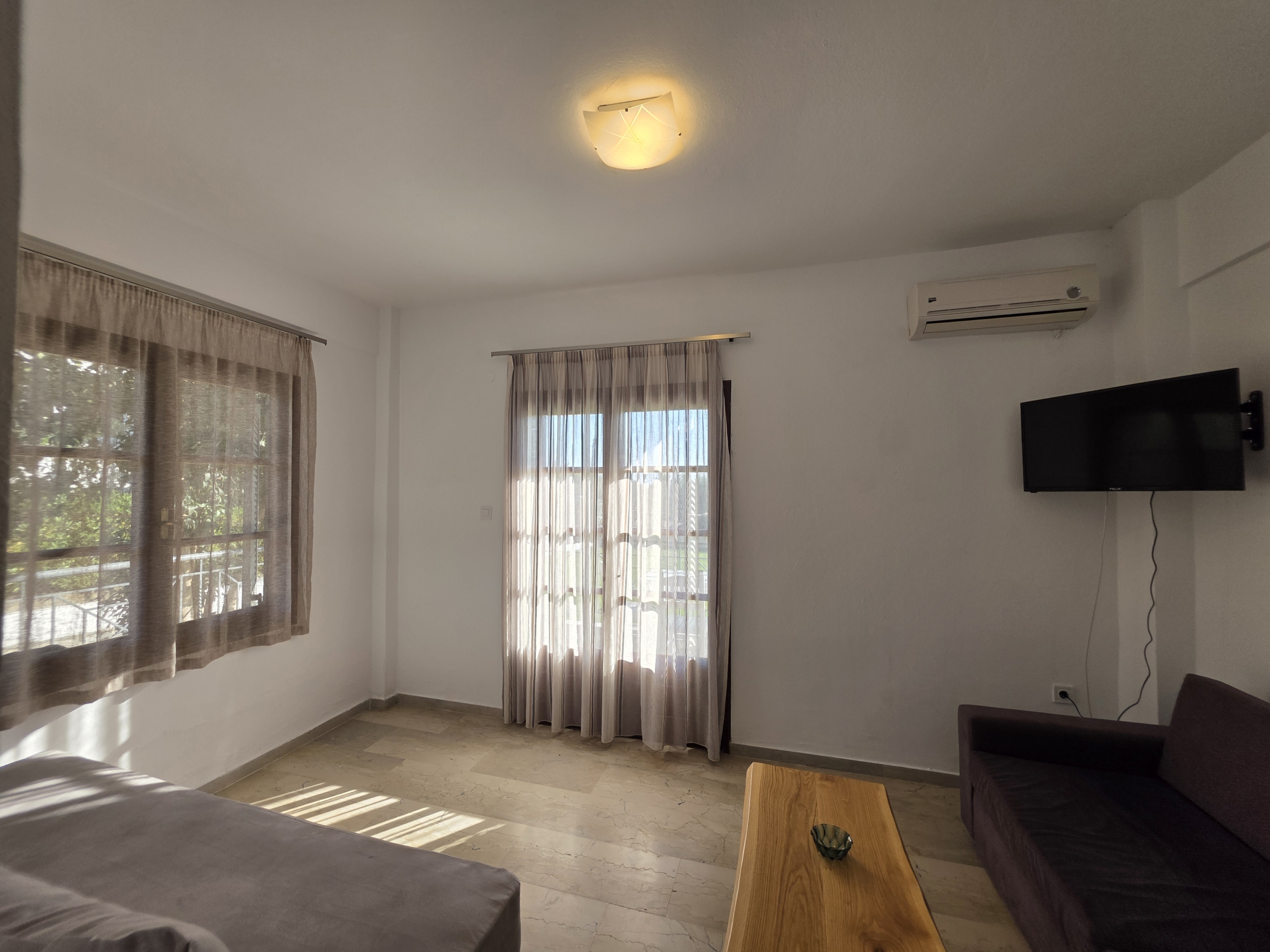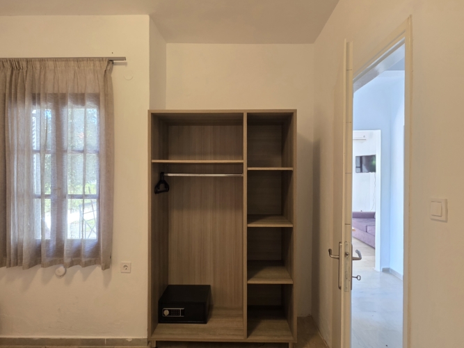Theros Apartments “S” feature a selection of well-designed apartments, including sea-view units located on the 1st and 2nd floors, suitable for up to three guests. These apartments are ideal for couples or small families looking for sea view accommodation in Mola Kaliva.