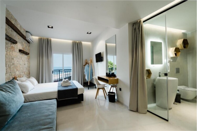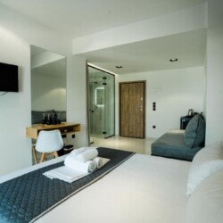 The Triple Studio Sea View comfortably accommodates up to 3 adults, combining elegant design with functionality and breathtaking sea views.