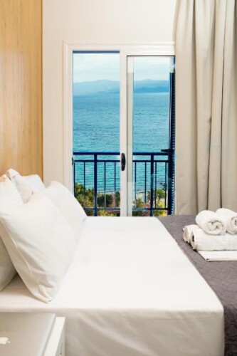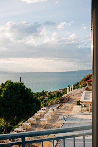 The building features modern luxury studios with unlimited sea views, designed to deliver a refined and relaxing holiday experience in Halkidiki.